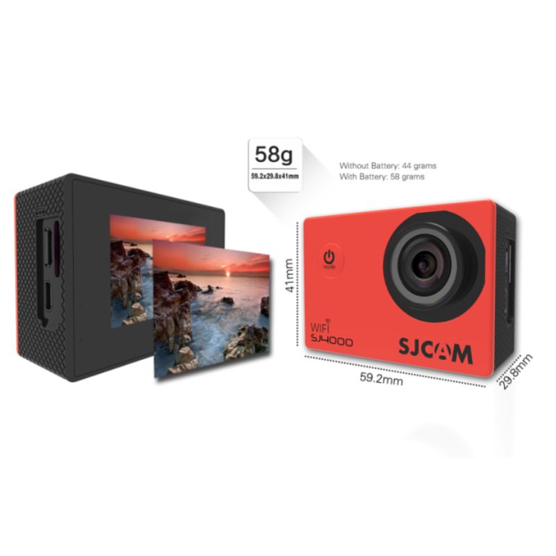 Camera hành trình thể thao SJCAM Sj4000 wifi được thiết kế chuyên dùng để quay phim khi chơi các môn thể thao ngoài trời và đặc biệt dùng cho việc quay phim các môn thể thao dưới nước như bơi, lặn. Tính năng chịu nước, làm cho camera có thể chụp ảnh và quay video dưới nước đến 30 mét. Với ống kính máy ảnh có độ phân giải cao và độ nhạy mức độ ánh sáng thấp, bạn sẽ không bao giờ bỏ lỡ bất kỳ cơ hội nào để thưởng thức vẻ đẹp của hình ảnh mà camera quay được.